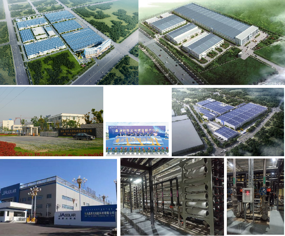 自2020年起,我司相繼承擔了晶澳太陽能在多個地點(義烏、越南、曲靖、包頭、揚州)的多個超純水系統建設項目。這些項目其中包括:(1)義烏晶澳:建設了配套10GW高效電池與10GW高效組件項目的超純水系統;(2)越南:實施了針對3.5GW太陽能電池產能的超純水系統工程;(3)包頭:負責建設了滿足20GW拉晶切片生產需求的超純水系統;(4)曲靖:部署了為10GW高效電池和5GW高效組件服務的超純水系統。上述項目廣泛采用了多種先進工藝技術,如UF、2RO、EDI、PMB、M/CF等,以確保超純水制備的質量與效率。通過這些綜合技術方案的成功應用,我們有效地支持了晶澳各地(義烏、越南、曲靖、包頭、揚州)生產線對于超純水高標準的使用要求,為其生產活動提供了堅實的基礎。