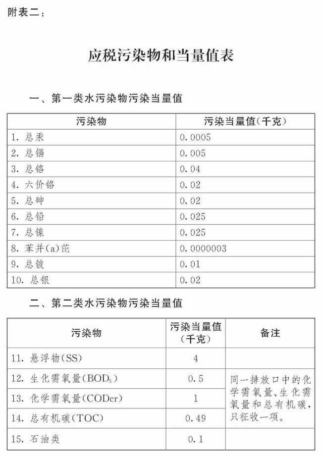 (二)應(yīng)稅水污染物按照污染物排放量折合的污染當(dāng)量數(shù)確定;